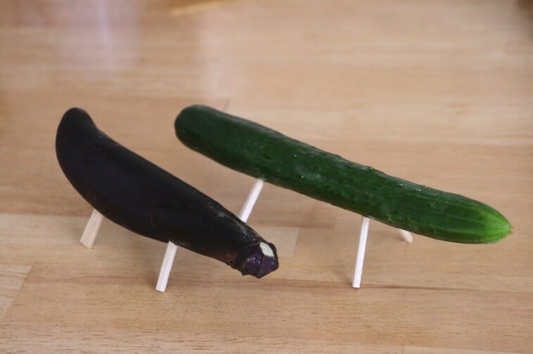 通常农村的家庭都有供奉祖先的供奉台,在盂兰盆节里,会供奉上各式水果蔬菜,糕糖点。在供品里一定不会少了黄瓜和茄子。日本很多地方都会把黄瓜和茄子插上麻杆,坐成马和牛的样子,黄瓜似身形矫健快步奔跑的马,祖先们可坐着它快点回家。茄子似慢步行走的牛,驮上供品重回自己的他界。