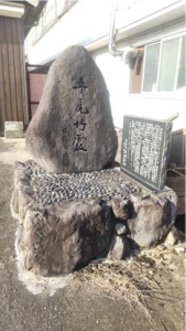 This monument marks the location of Chikka-san’s birthplace in Kawaramachi. The main stone has his name carved into it. The square dark stone on the right gives a brief explanation of Chikka-san.
