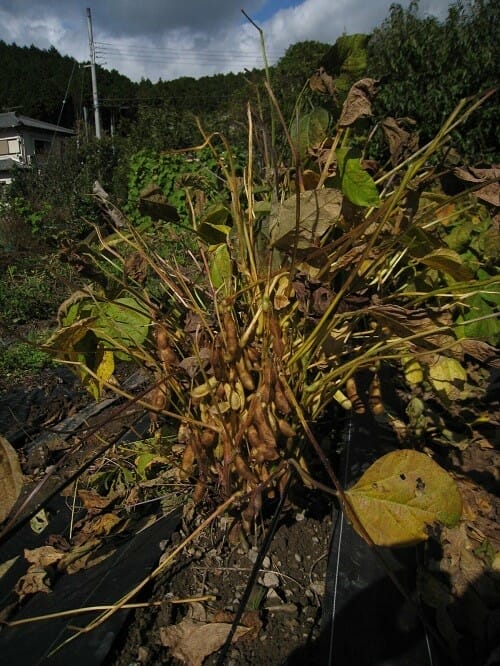 But there’s more. After the rush to eat fresh kuromame ends, the farmers keep working to dry the remaining beans for use at the New Year, when kuromame stewed in soy sauce and sugar are almost a required item in New Year’s meals. Once stewed, they are as black as night and a richly flavored touch to the meal. The stewed beans also keep well, which is essential for New Year’s food because only minimal cooking is done over the New Year’s holiday, and they are symbolic as well, because “mame” is also a different word meaning “diligent” implying healthy and energetic. (Everything in a New Year’s meal has a meaning in Japan, but that’s another story.)
