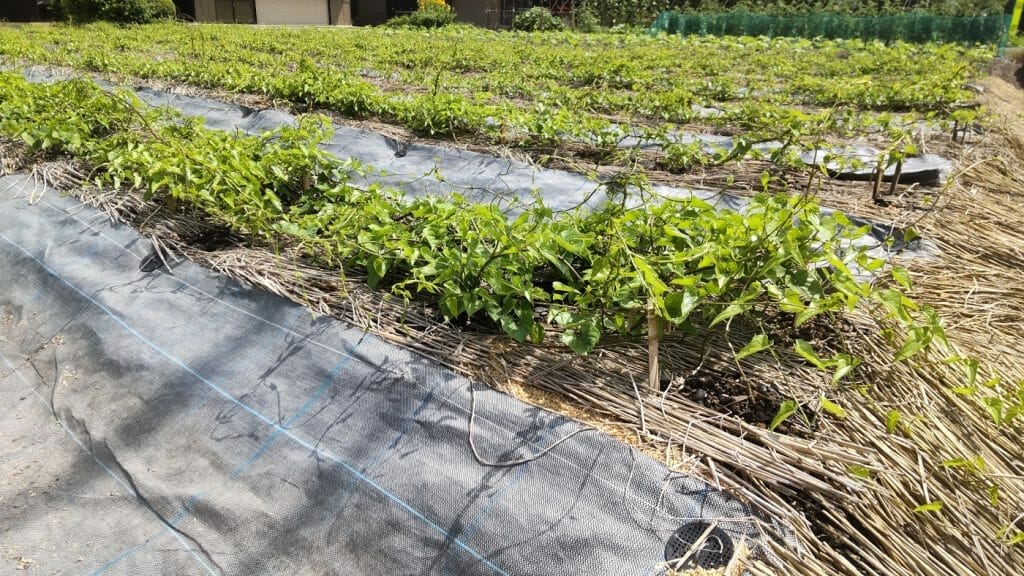 The use of high rows and woven plastic sheets to control weeds and drying is common to many things grown in Japan due to the climate here.