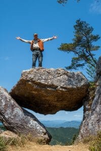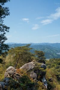 If you are looking for a challenging climb, maybe this peak isn’t it. But, if you are looking for a spectacular view from the top and don’t want to spend many hours getting there, this is the place for you. There are a number of natural wonders to see on the way up and at the top. There are also shrine and temple remains, ancient rock walls and the site of the original mountain top castle built by Mitsuhide Akechi. (For further information see https://en.wikipedia.org/wiki/Akechi_Mitsuhide)