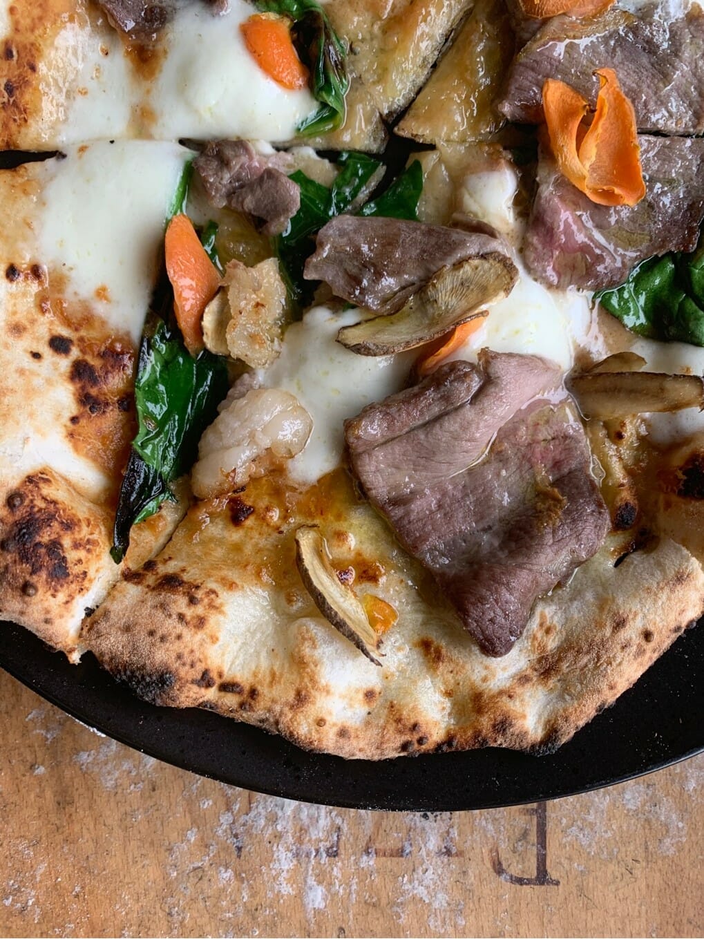 “A good pizza begins with an appetizing aroma” is Ikuma San’s cooking philosophy. The base of the pizza is made using sour dough, giving it a different flavor to a regular pizza base. The filling is tomato, topped with cheese and dressed with locally grown seasonal vegetables, fruits or my favorite, wild boar meat. There are quite a few different flavors and styles to choose from. Alcoholic beverages, including Italian beer and wine, as well as coffee, juice and other drinks are served. Lunch time just turn up, but you need to make a reservation for the evening dinner service.