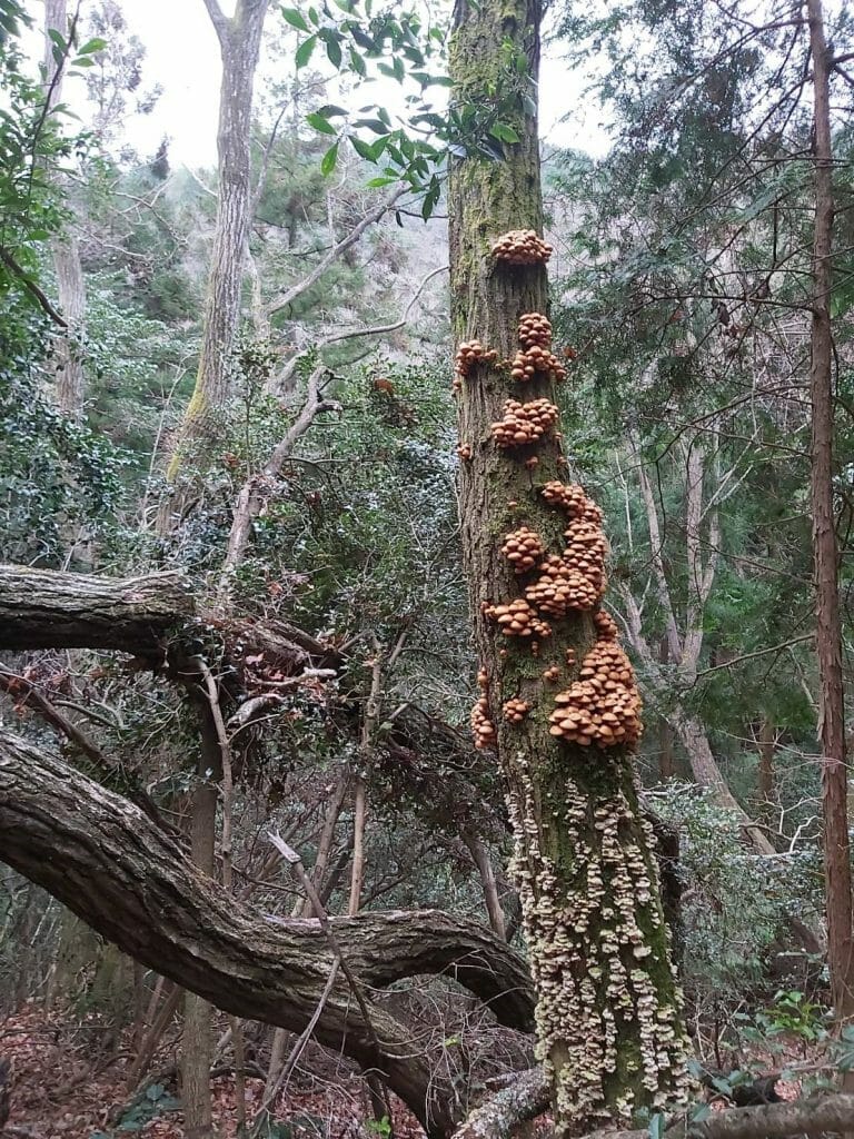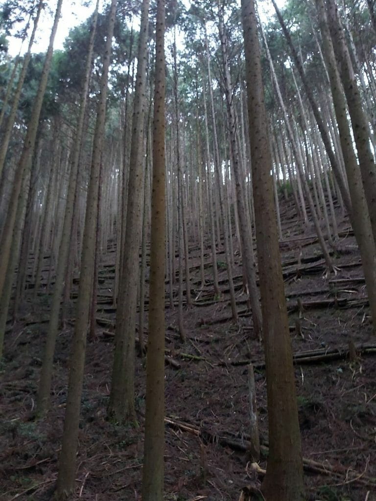 One of the main reasons I like the local mountain paths above Bunpoji Temple is all the variety they offer. There are many different things to see and feel along the way. Many people think of mountain climbing only in terms of getting to the top, but the journey is often the best part. You’ll see areas with developed forestry that is well taken care of, such as in the following photo, and if you look very carefully to the sides of the trails, you’ll may even find an old tea field. (The tea plants will naturally grow to about 3 m in height; I’ve read of the period when tea leaves were picked by climbing the trees, but it was hard to imagine that until I saw the tall tea trees growing in the mountains.)