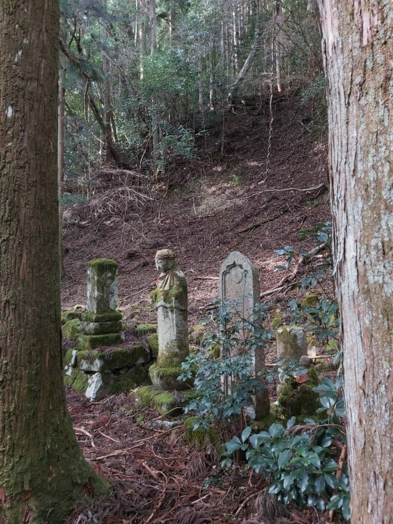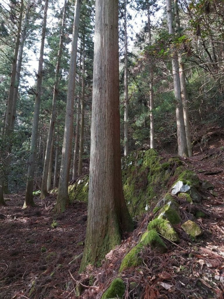 If you keep on going past the old cedar trees, you will find a lot of old remains in the mountains, including an area with several graveyards for Buddhist priests. (You can tell they are for priests from the shape of the head stones and writing on them.) Long ago, there was a very large temple in the area with road access from the other side. You can also find the old well for the temple and the old foundations of mountain forts.