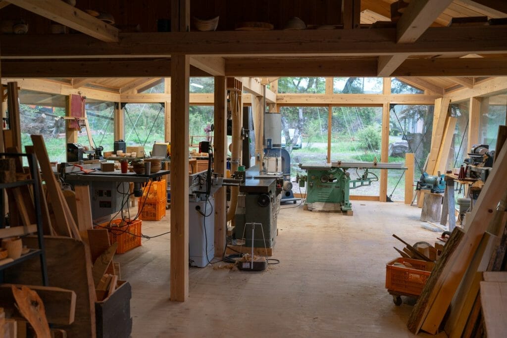 There’s a ‘co-working space’, woodworking workshops with related projects, teacher and learning facilities available for hire. As well as private rooms/suites for overnight stays.