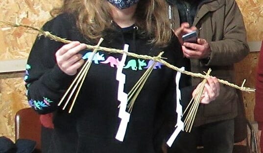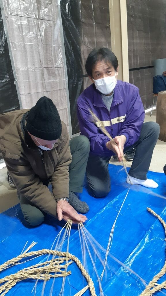 Shime nawa is at first glance a kind of ‘greeting banner’ made to announce to Tosh-gami that the household is ready to receive him. But it has a much deeper significance than that. It is considered to be the border between the physical and spiritual or holy realm. That’s why everything within the boundary of the Shime Nawa is considered to be holy or sanctified. You can find it being used in many ceremonial situations. The shime nawa is a rope of rice straw made by hand, into which certain decorative elements using leaves and paper are placed. For New Year it is hung over the doorway of the house, office, temple etc.