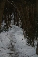 Ensuite cela commence à grimper. Cette la lune éclairait encore bien, mais la lampe frontale était nécessaire, d’autant que la neige de la veille était loin d’avoir entièrement fondu. Au tiers de la montée environ, on arrive au pied d’un escalier qui mène au 虚空蔵寺 Kokuzōji un temple bouddhiste dont la première construction, effectué par le prince 聖徳太子, Shōtoku Taishi, remonterait au VIIème siècle, sous le règne de l’empereur Suiko, … incendié à la fin du XVIème siècle, il a été reconstruit, mais semble plutôt abandonné. Par un chemin à droite du temple, l’ascension continue. D’un bon pas, j’ai mis environ une demi heure pour atteindre le sommet depuis le départ du sentier. Le dénivelé est d’environ 400 mètres, et les pentes sont parfois assez abruptes. Ce n’est cependant pas une montée difficile, je me souviens l’avoir faite avec mon fils lorsqu’il avait trois ans.