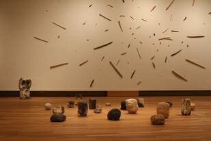 La seconde (également du 12 décembre 2020 au 21 février 2021) est dédiée à l’artiste UEMATSU Eiji. Intitulée La terre et le feu (土と火 – seule une traduction anglaise est donnée : Soil and Fire) permet de découvrir l’univers de ce sculpteur qui explore les formes simples, naturelles pourrait-on dire, de son matériau de prédilections : la terre.