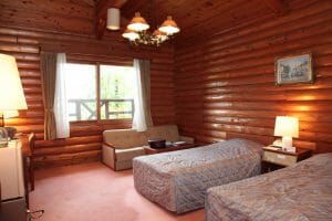 小さな森の小道を抜けると静かにたたずむ、北欧の田舎のホテルを思わせる新たんば荘。