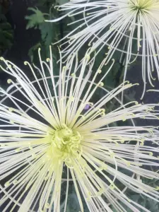 Onaegiku is a pure Japanese chrysanthemum which has been fondly cultivated only in the Sasayama area in Kansai region. It is an elegant variety, of which characteristic is that once it is in full bloom the petals curl up to show the backside of them.