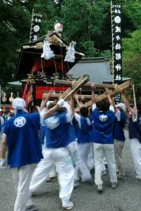 precinct, also the portable shrine “Mikoshi” are carried around by local men.