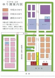 In Tamamizu Yuri-en, there is a small pond where fresh water springs, which is called “Tamamizu” and is a designated historic site of Tambasasayama City.