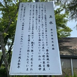 The river flowed abundantly into the foot of the northwestern part of Ninomaru when Sasayama castle was being built, and the “stacked well”(now at the entrance of Oshoin) was built because of the flow. The builders lined up bamboo bundles on the riverbed, so that both Tamamizu and the Castle have plenty of water. There is a theory that it is an observation pond for the amount of water in the castle.