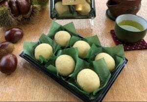 ◎ Kuri(Chestnut) mochi ・ ・ ・ Tamba’s fresh chestnuts that have grown abundantly. It is an autumn-only gem made with craftsmanship, valuing the flavor and taste in gratitude for the best blessings of nature.